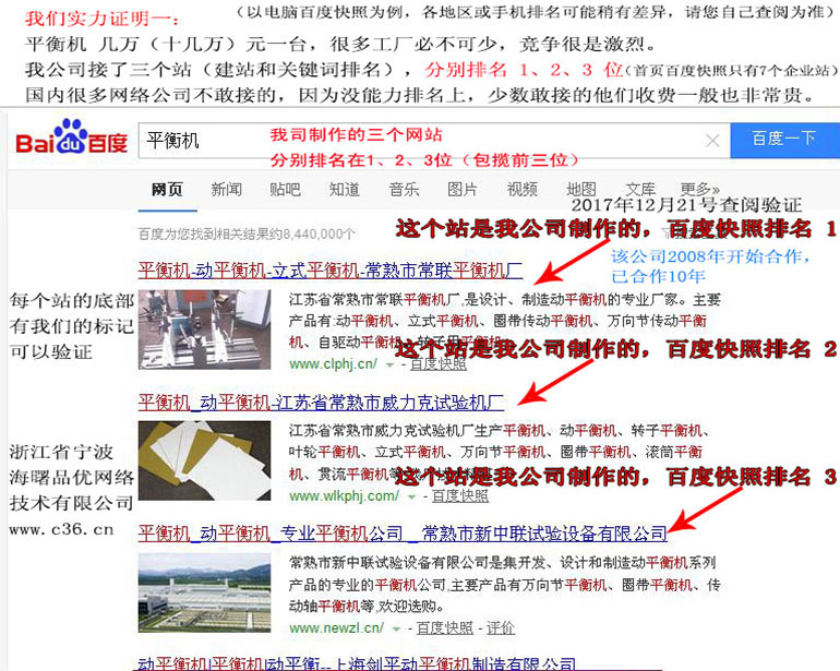 平衡機(jī) : 2018-05-23上線 2018-06-08排名第5頁(yè) 2018-07-01排名第30名 2018-08-15排名第11名 2018-08-26排名第7名 (注:平衡機(jī)一臺(tái)需要幾萬到10多萬元, 是難排名的關(guān)鍵詞,百度重點(diǎn)關(guān)照,因百度推廣的話,大概要60元一點(diǎn)擊)